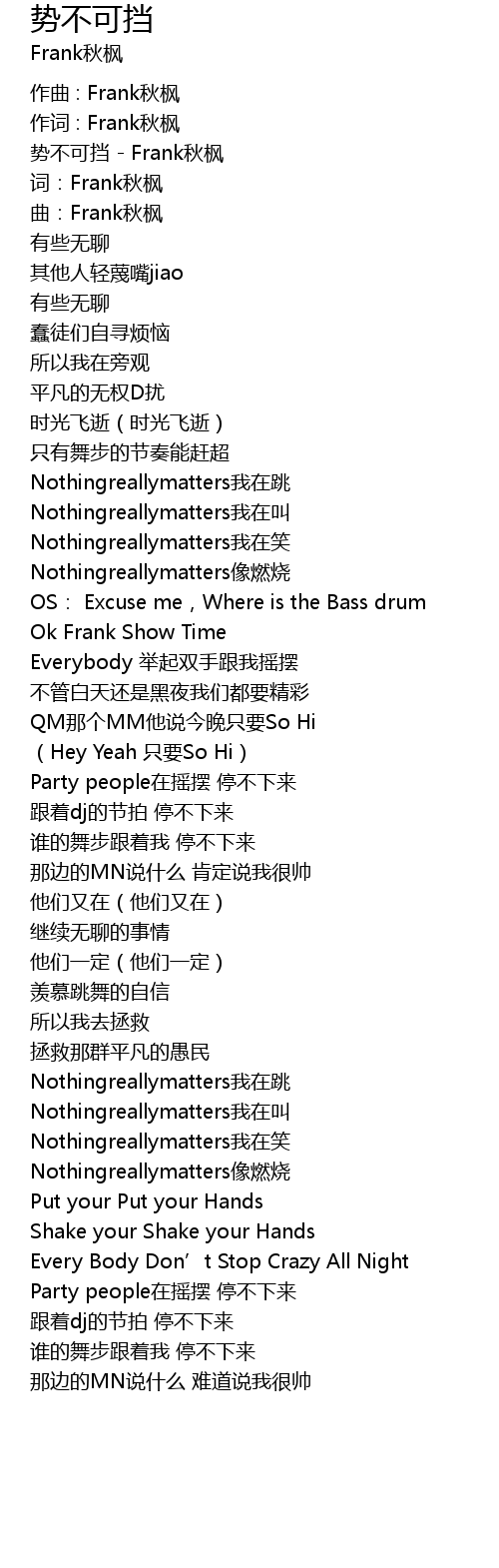 | Everybody jǔ qǐ shuāng shǒu gēn wǒ yáo bǎi | |