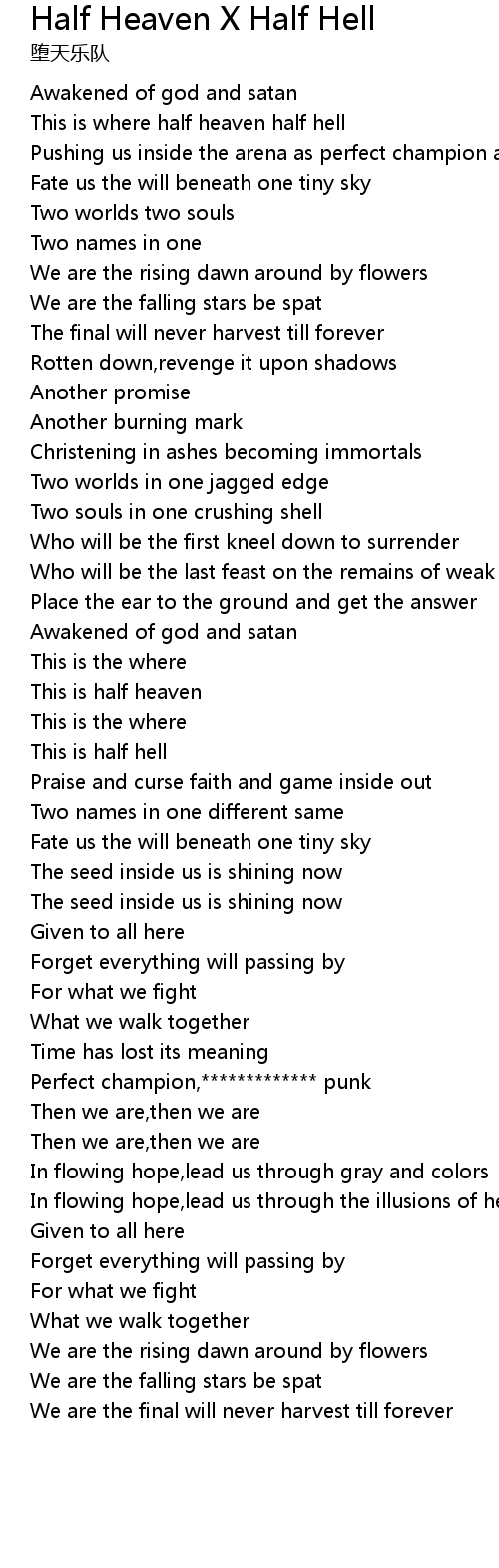 Half Heaven X Half Hell Lyrics