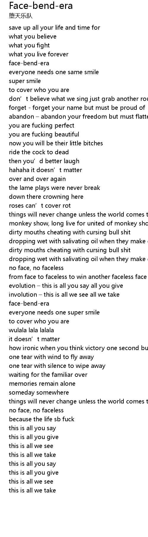 | [01:40.64] | dirty mouths cheating with cursing bull shit |