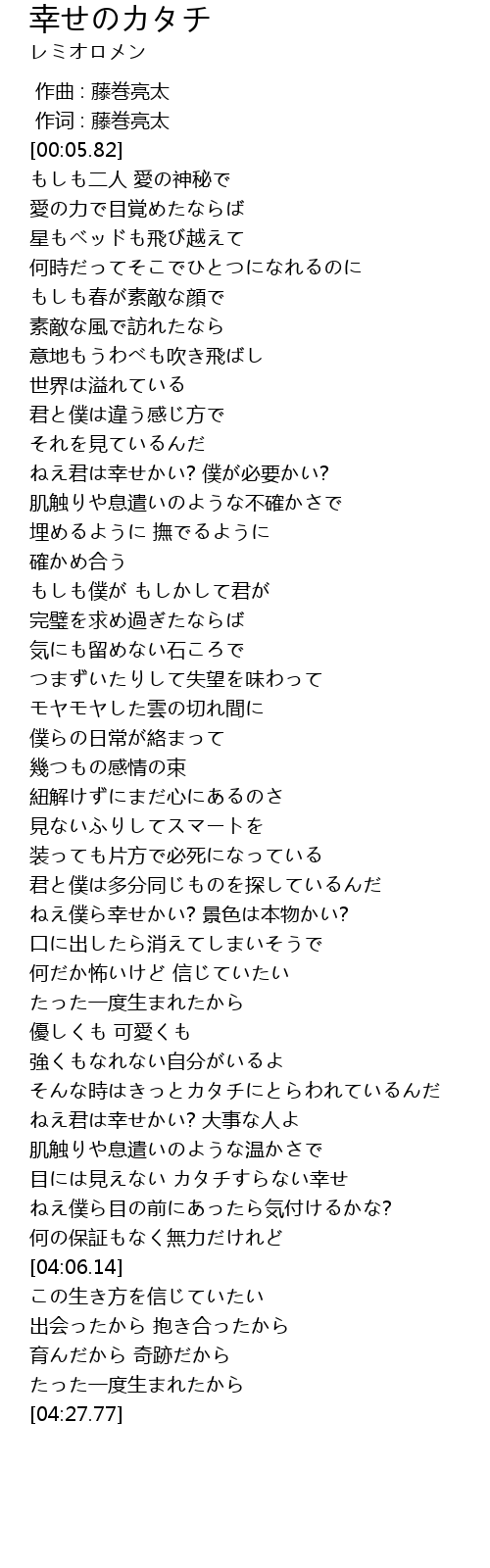 | [03:46.39] | 目には見えない カタチすらない幸せ |