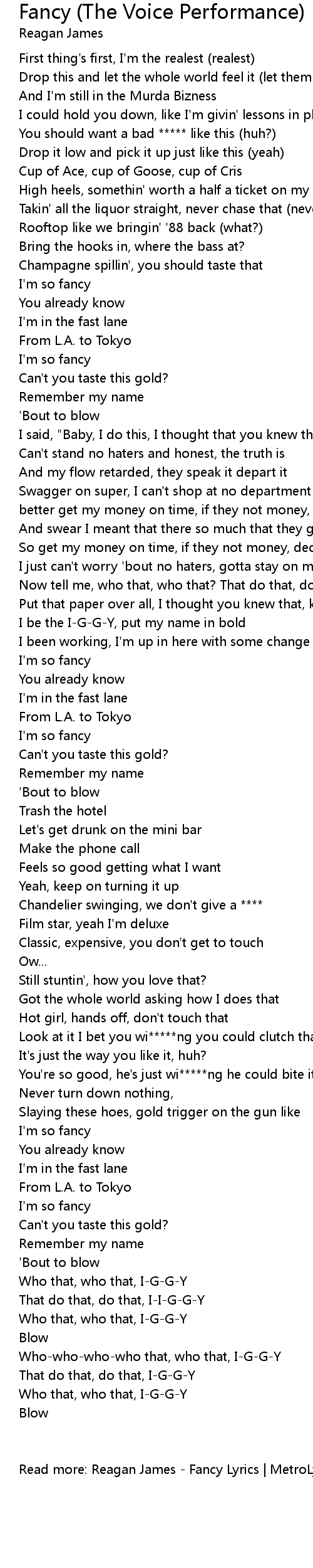 Read more: Reagan James - Fancy Lyrics | MetroLyrics