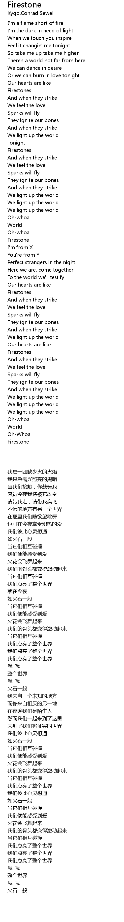 | [00:33.430] | I'm a flame short of fire |