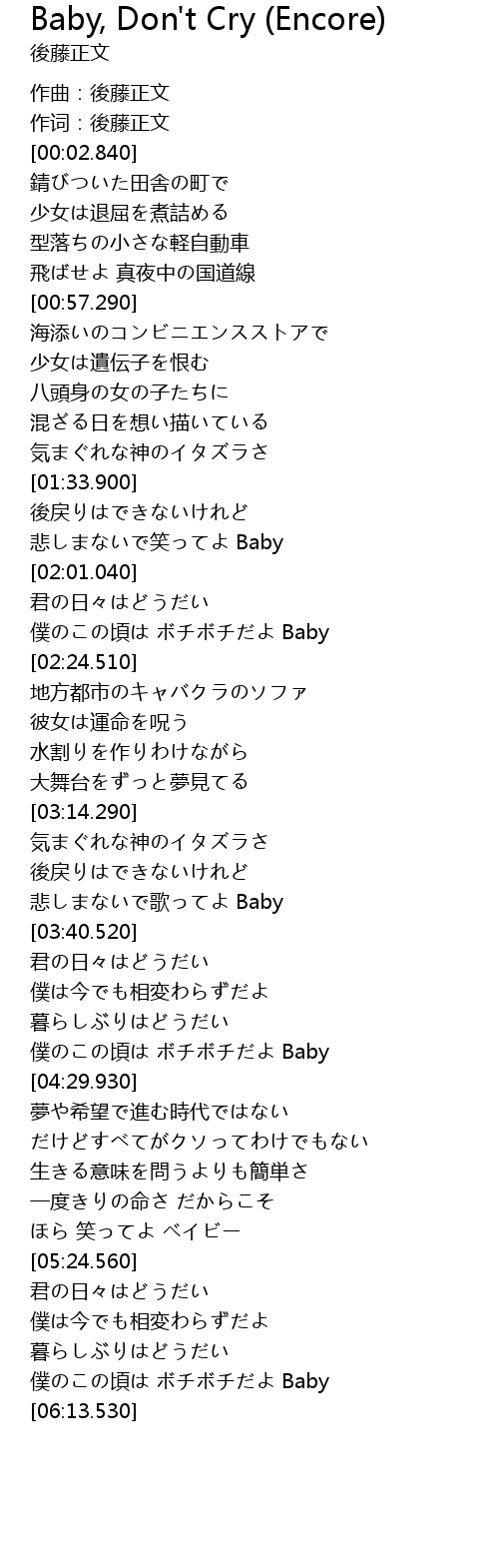 | [06:03.200] | 僕のこの頃は ボチボチだよ Baby |