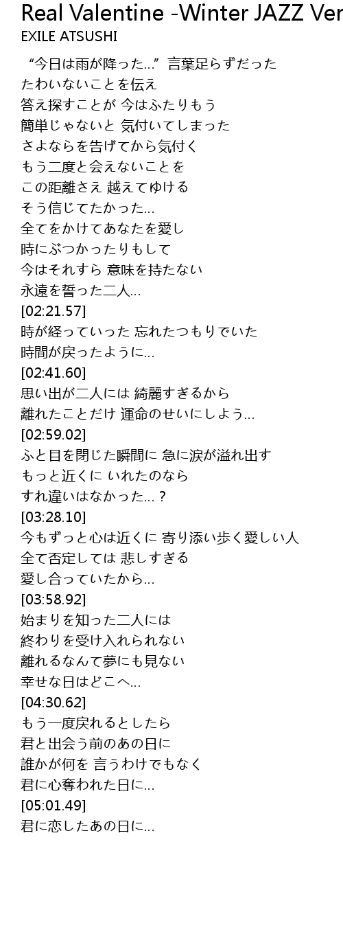 | [02:51.38] | 離れたことだけ 運命のせいにしよう… |