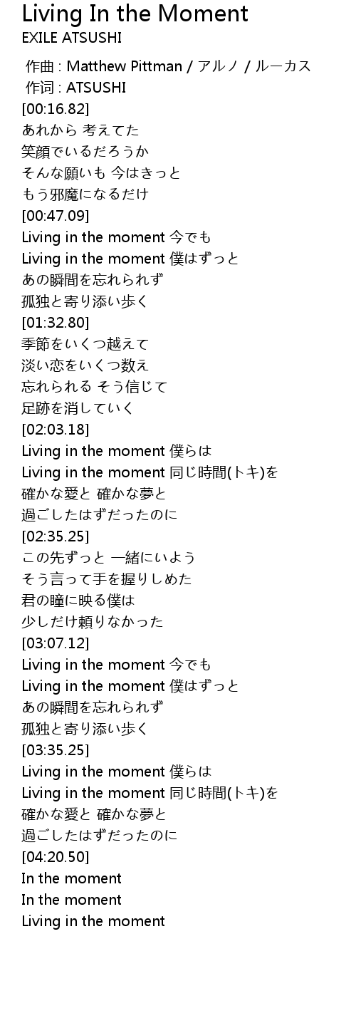 | [02:03.19] | Living in the moment pu |