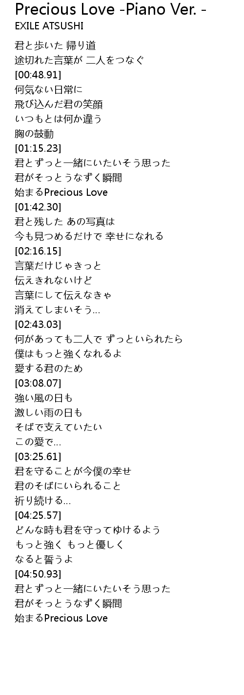 | [01:36.46] | 始まるPrecious Love |
