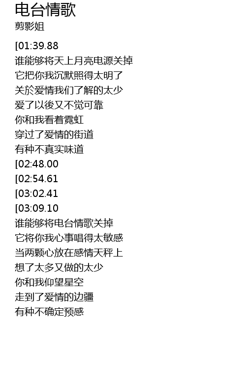 | [02:05.40] | 谁能够将电台情歌关掉 |