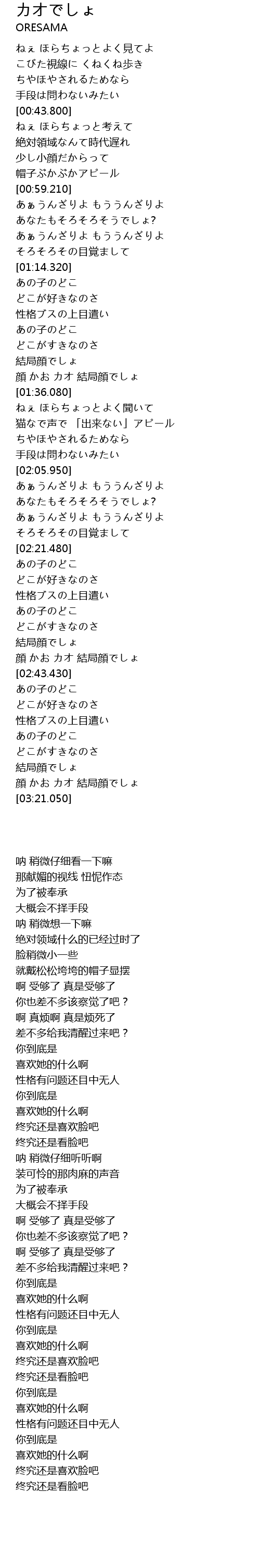 | [03:14.760] | 顔 かお カオ 結局顔でしょ |