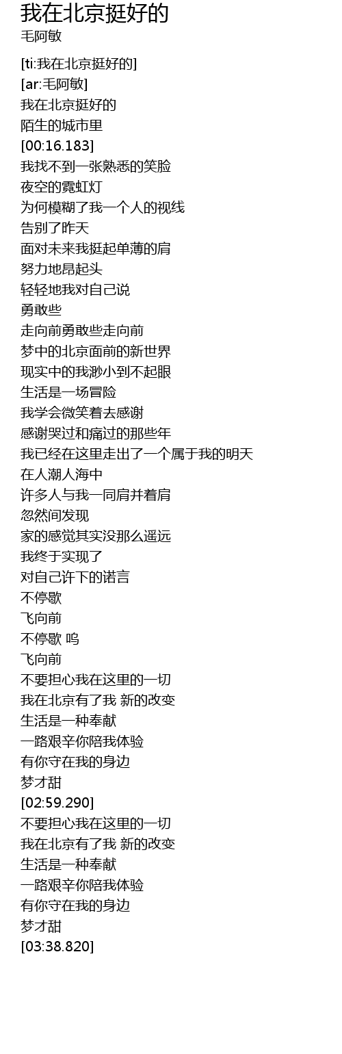 | [03:12.350] | 我在北京有了我 新的改变 |