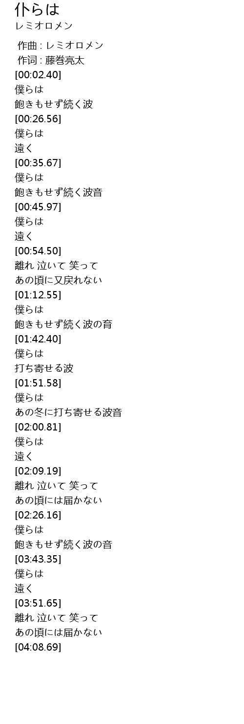 | [00:00.680] | 作词 : 藤巻亮太 |