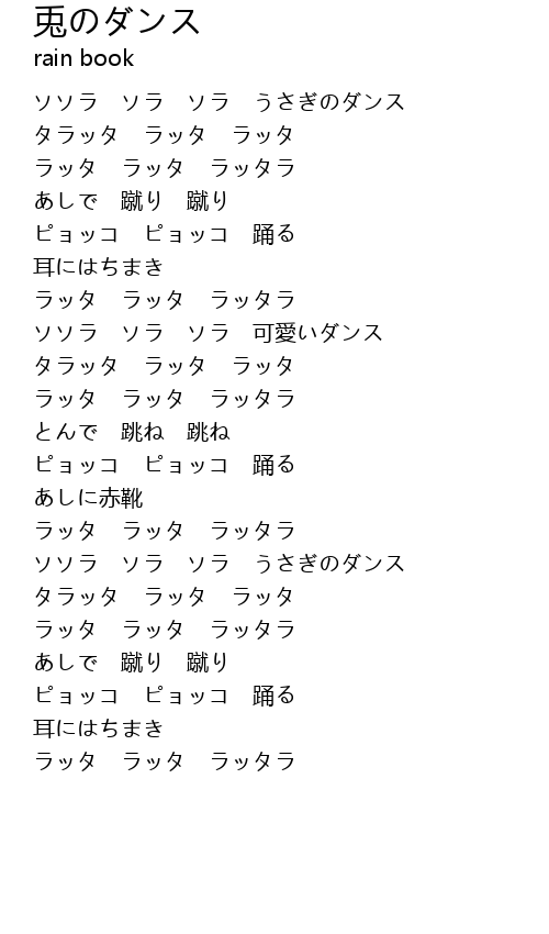 | [00:23.10] | ソソラ ソラ ソラ うさぎのダンス |