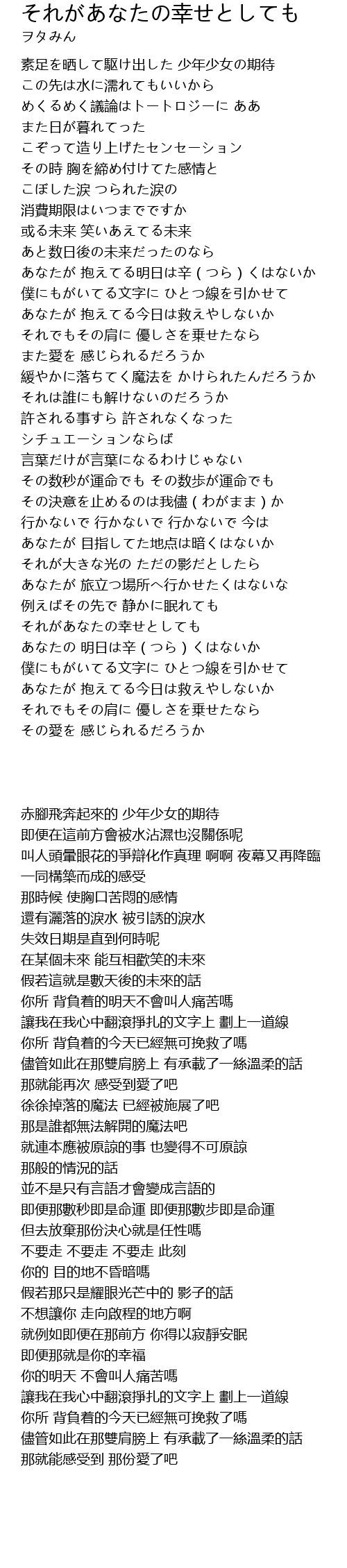| [03:23.96] | それがあなたの幸せとしても |