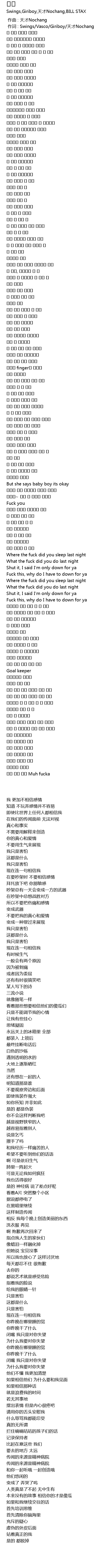 | [00:00.698] | 作词 : Swings/Vasco/Giriboy/天才Nochang |
