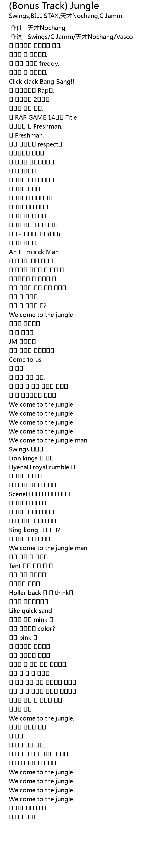 | [00:01.00] | 作词 : Swings/C Jamm/天才Nochang/Vasco |
