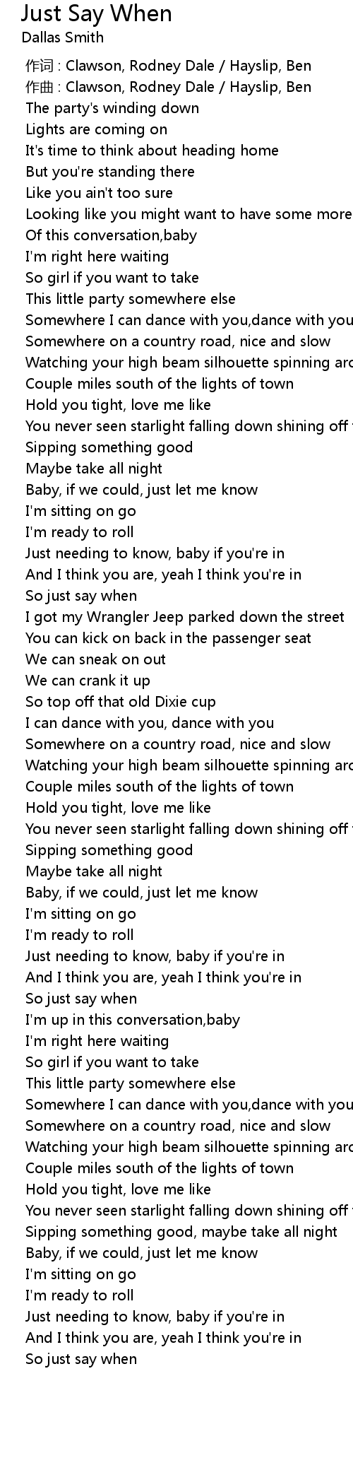| [00:00.000] | 作词 : Clawson, Rodney Dale / Hayslip, Ben |