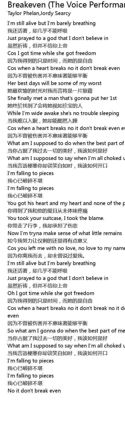 | Cos when a heart breaks no it don' t break no it don' t break no it don' t break even | |
