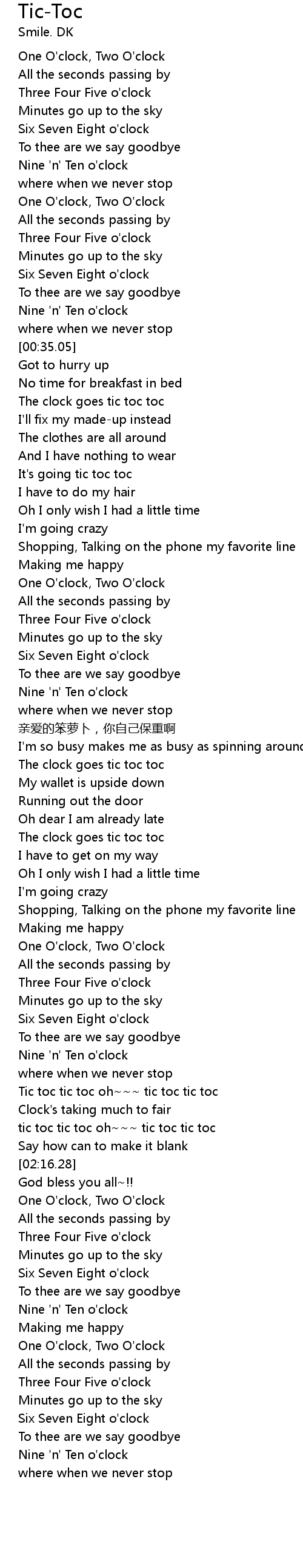 | [02:08.91] | tic toc tic toc oh tic toc tic toc |