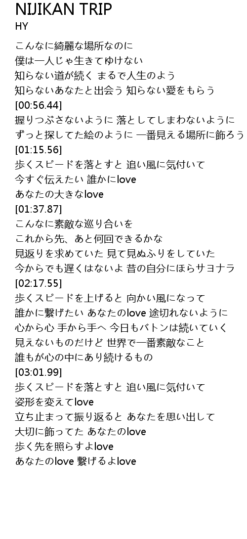 | [00:49.67] | 知らないあなたと出会う 知らない愛をもらう |