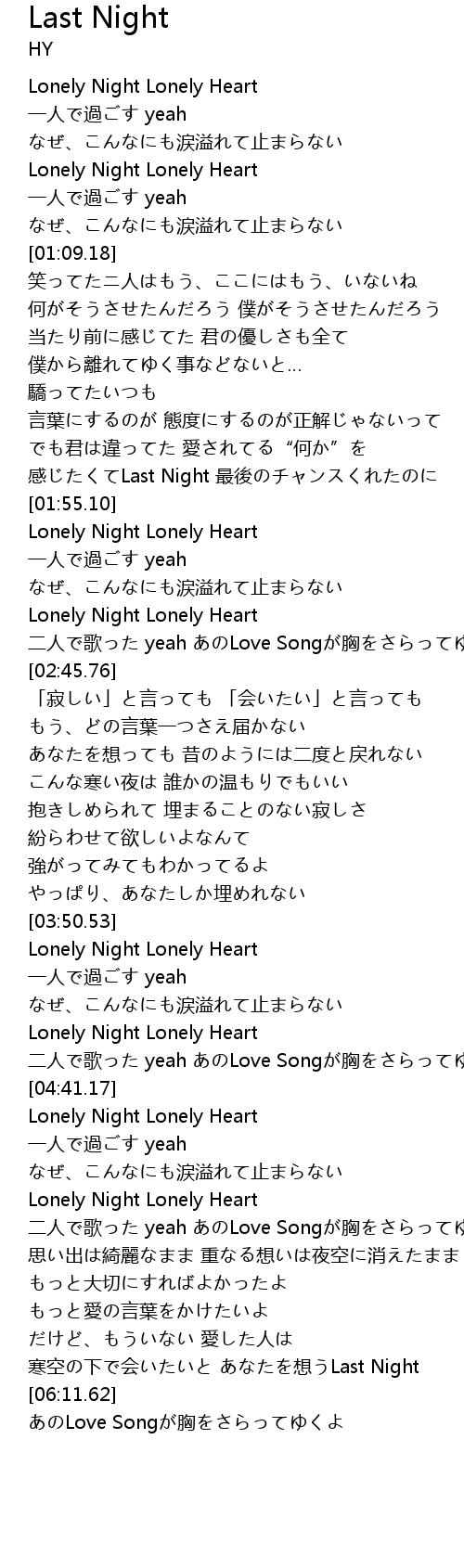 | [06:04.78] | 寒空の下で会いたいと あなたを想うLast Night |