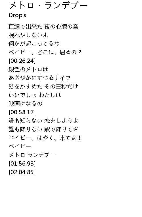 | [01:35.18] | 誰も知らない 恋をしようよ |