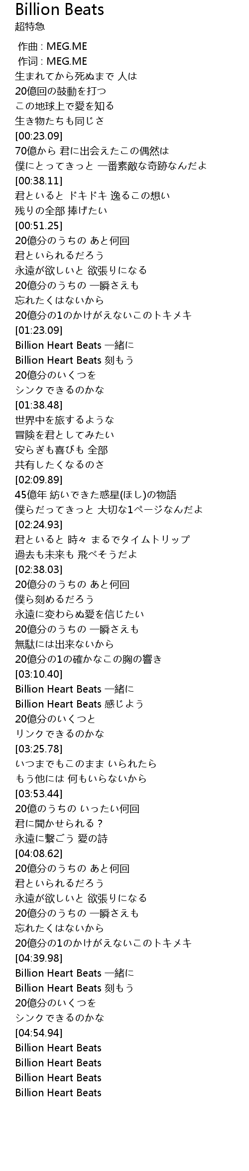 | [01:23.52] | Billion Heart Beats 一緒に |
