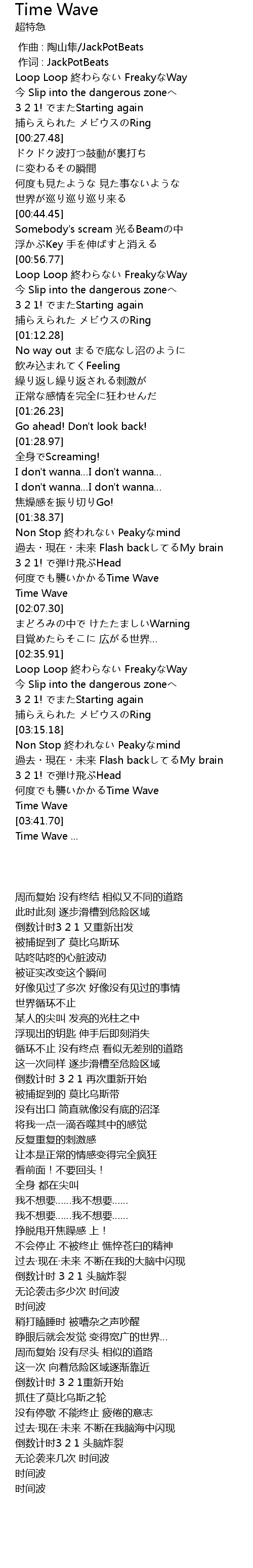 | [03:24.70] | 何度でも襲いかかるTime Wave |