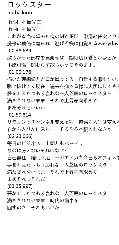 | [03:06.995] | 夢を叶えたつもり哀れな一人芝居のロックスター |