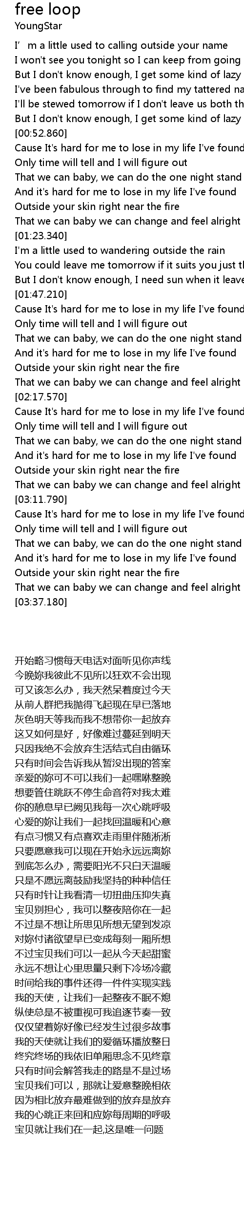 | [00:59.800] | Cause It's hard for me to lose in my life I've found |
