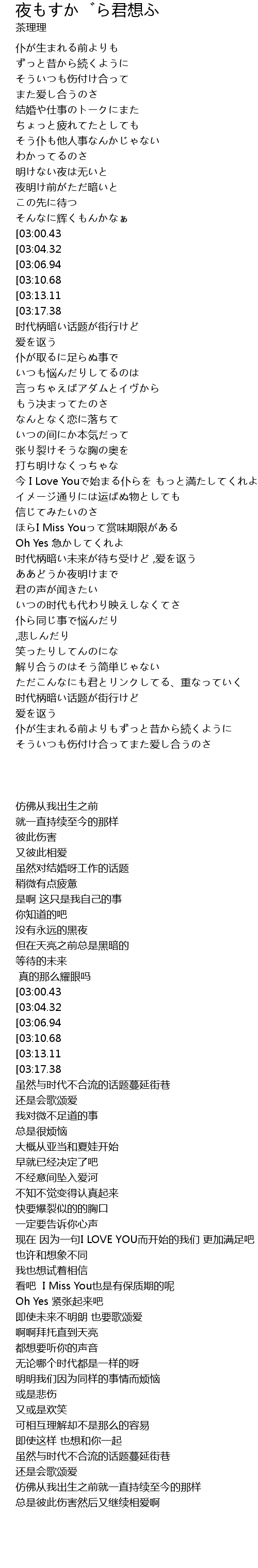 | [01:07.57][03:13.11] | ほらI Miss Youって谛めムードでも |