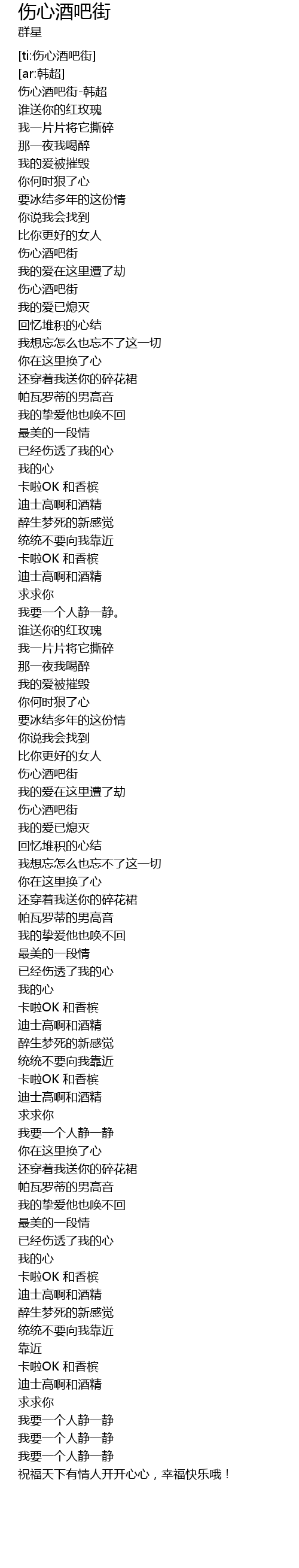 | [00:07.90] | 伤心酒吧街-韩超 |