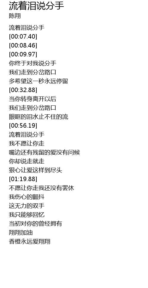 | [00:04.23] | 流着泪说分手 |