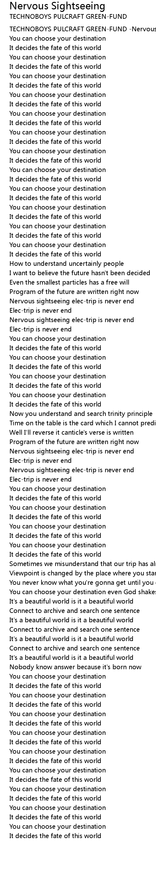 TECHNOBOYS PULCRAFT GREEN-FUND -Nervous Sightseeing |