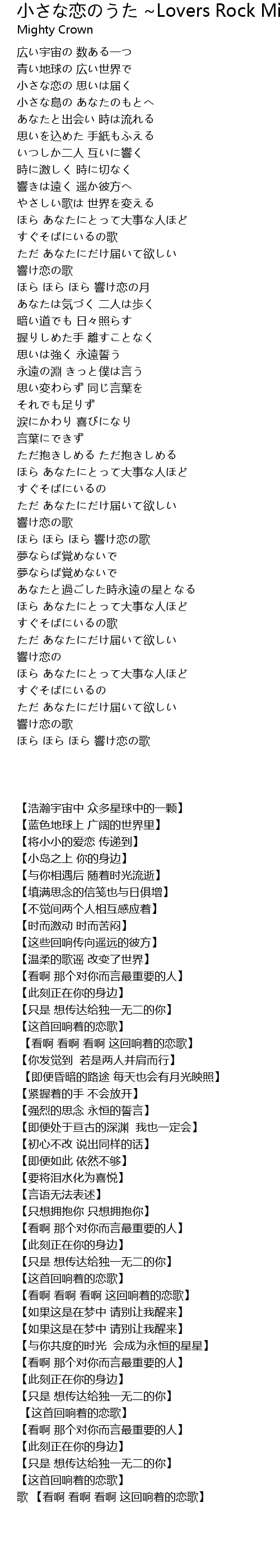 | Song | 小さな恋のうた ~Lovers Rock Mix~ |