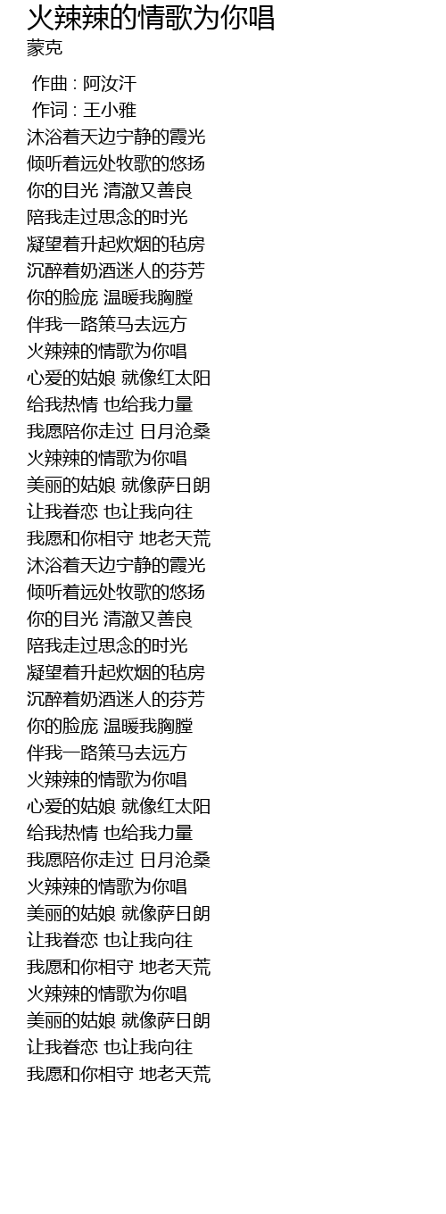 | [01:36.43] | 火辣辣的情歌为你唱 |