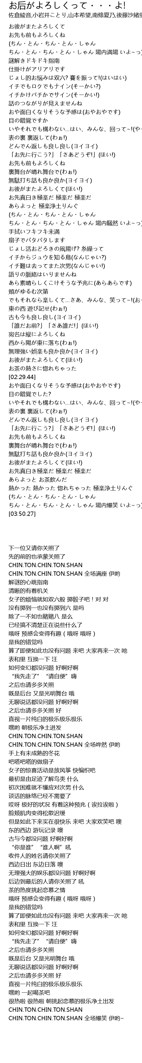 | [03:41.99] | ちん・とん・ちん・とん・しゃん 場内爆笑 いよ~っ) |