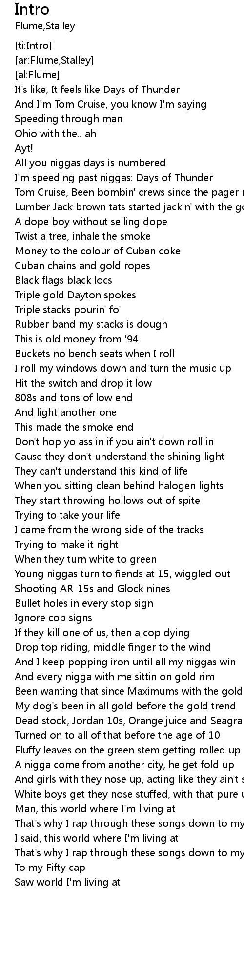 | [01:36.30] | I'm speeding past niggas: Days of Thunder |