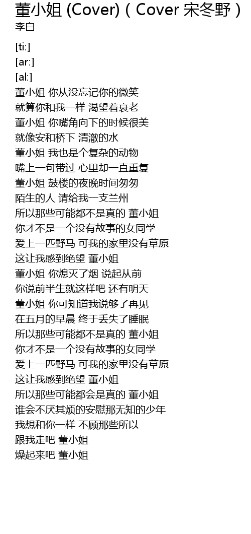 | [00:45.56] | 董小姐 我也是个复杂的动物 |