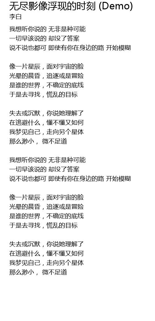 | Song | 无尽影像浮现的时刻 (Demo) |