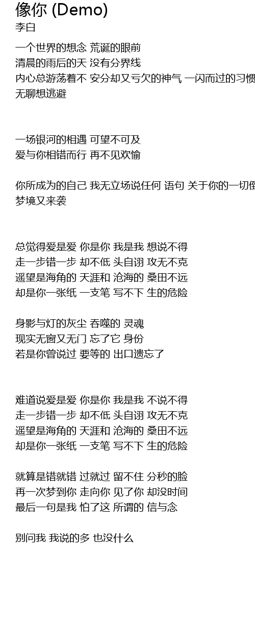 | 你所成为的自己 我无立场说任何 语句 关于你的一切倒影如 梦境又来袭 | |