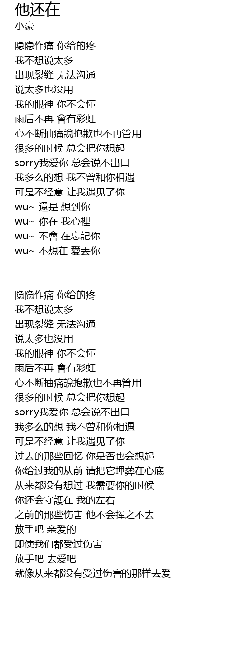 | sorry wo ai ni zong hui shuo bu chu kou | |