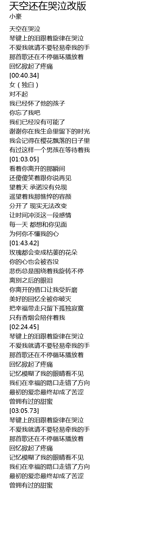 | [02:24.76] | 琴键上的泪跟着旋律在哭泣 |