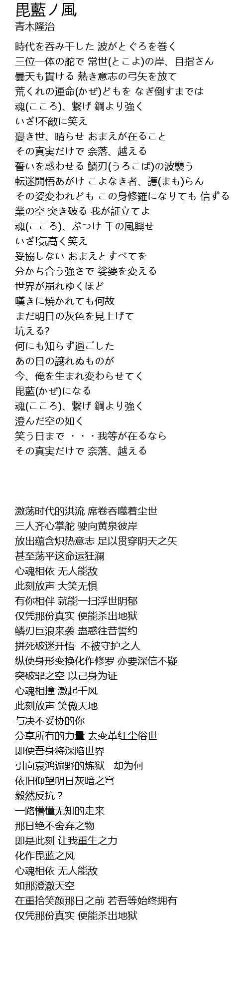 | [02:51.63] | 毘藍(かぜ)になる |