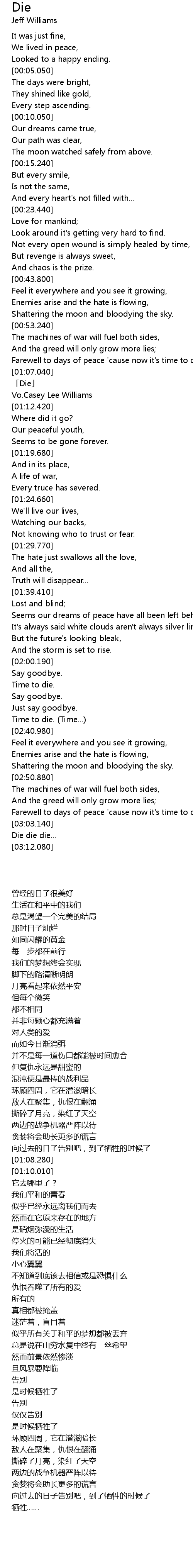 | [02:56.410] | Farewell to days of peace 'cause now it's time to die. |
