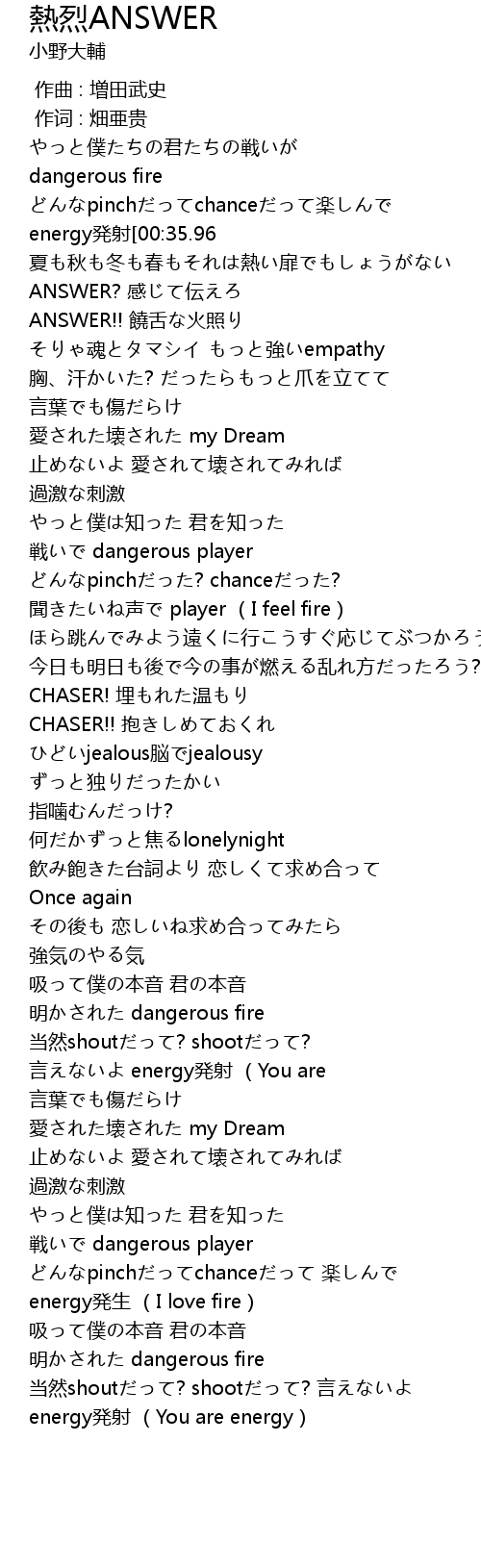 | [03:20.70] | energy発生 (I love fire) |