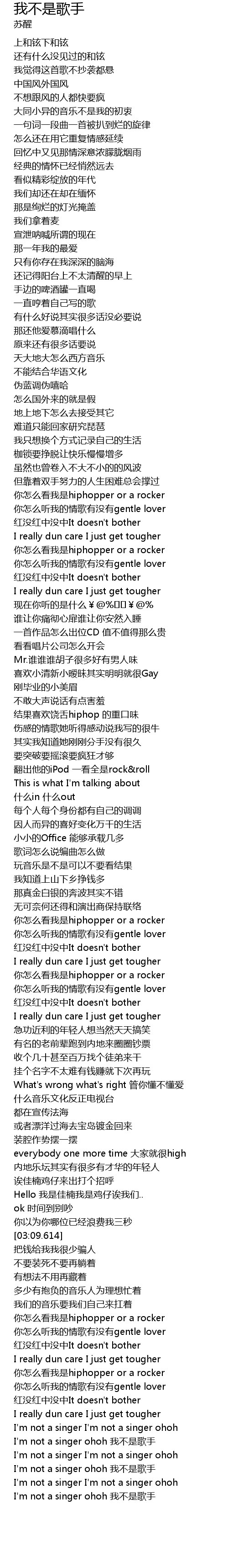 | [03:20.630] | 你怎么看我是hiphopper or a rocker |