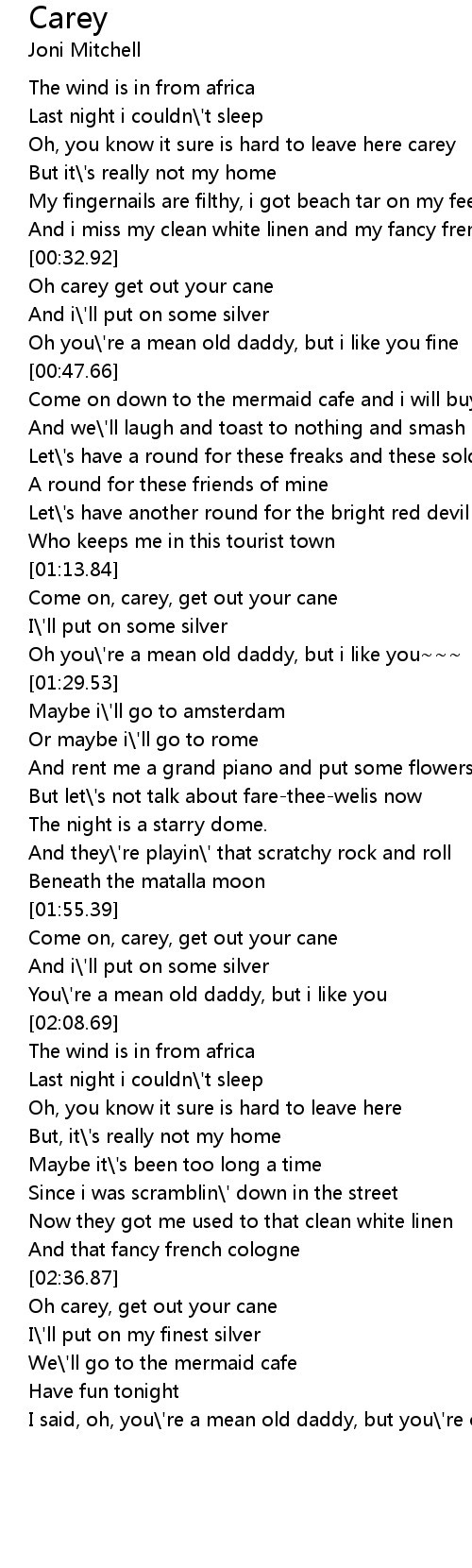 Oh carey, get out your cane |