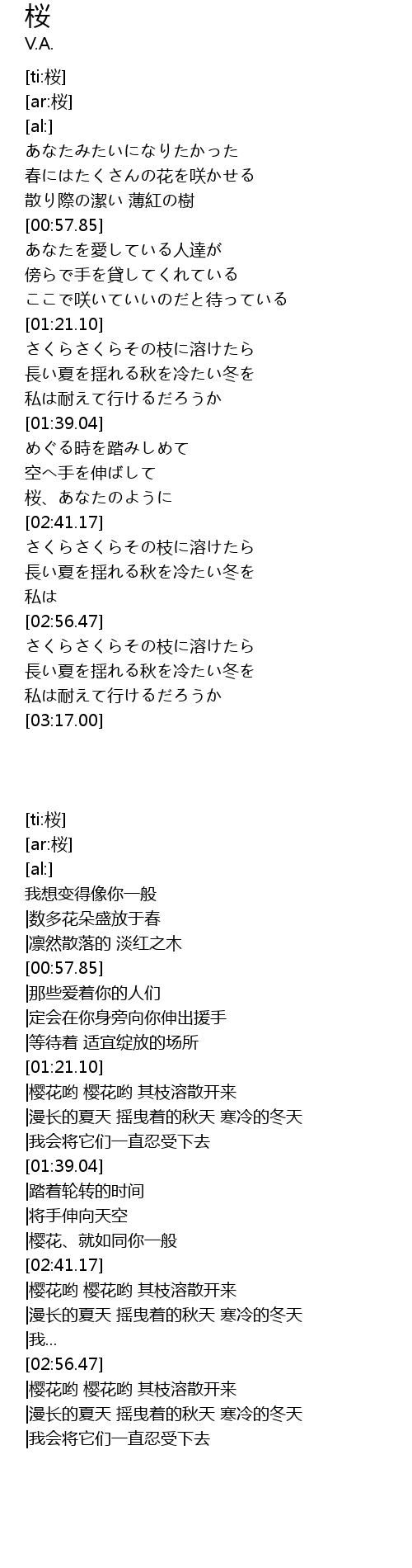 | [02:57.01] | さくらさくらその枝に溶けたら |