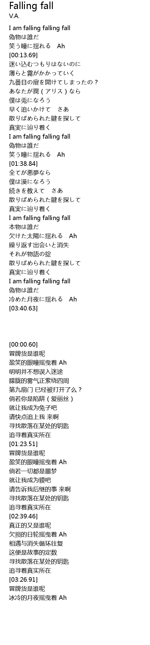 | [00:47.72] | 九番目の扉を開けてしまったの? |