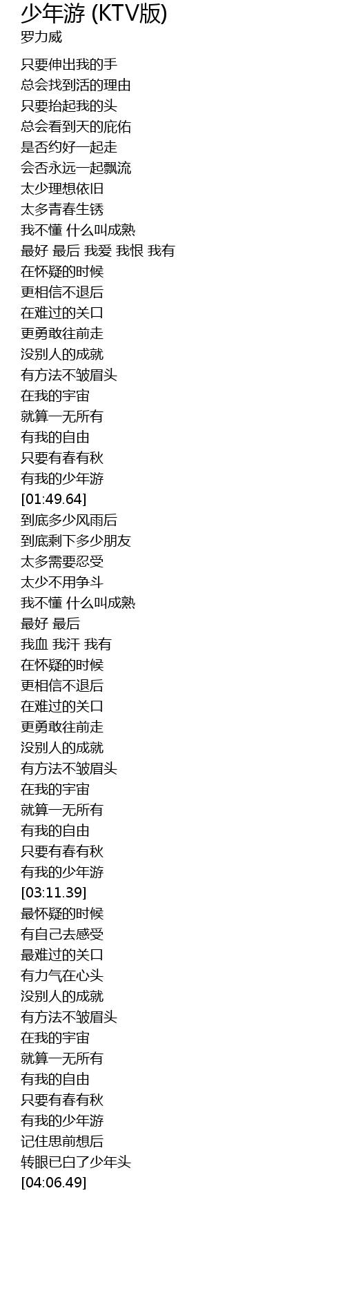 | [01:45.35] | yǒu wǒ de shào nián yóu |