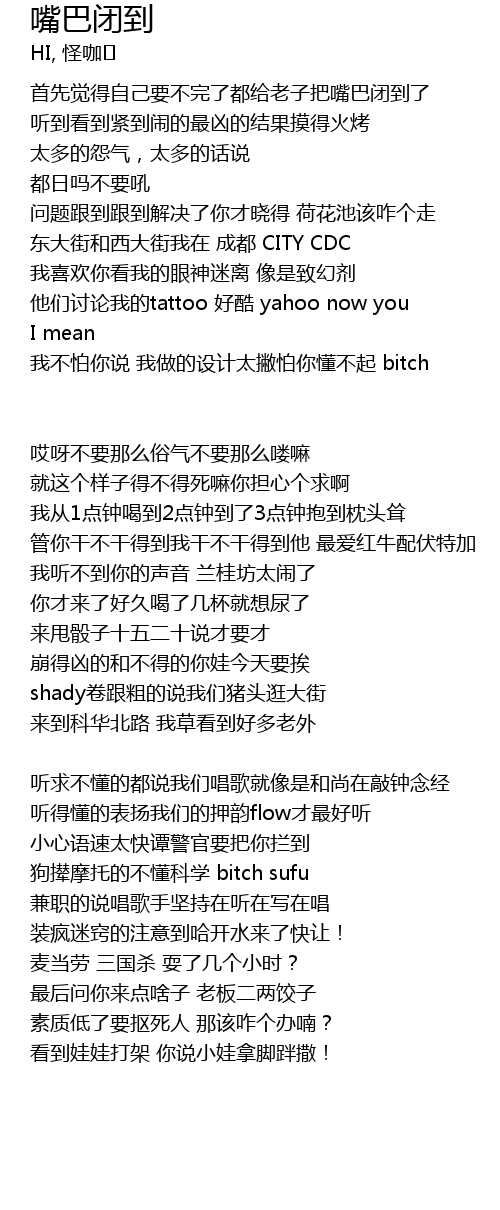 | 听得懂的表扬我们的押韵flow才最好听 | |